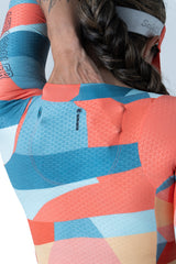 * Tecnología Aero: El tejido en la espalda y mangas por su estructura reduce la resistencia del aire, mejorando el rendimiento en el ciclismo y con bolsillo en espalda con borde termosellado, hecho con un tejido abierto para evitar la retención de agua.