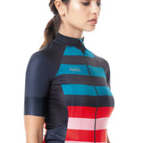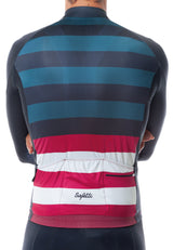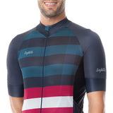 Jersey Dogliani de ciclismo, una prenda creada a partir de tejidos ultra livianos que se adecúan al cuerpo como una "segunda piel" ofreciendo mayor confort y ergonomía para el ciclista con protección solar. Cuenta con mangas en corte limpio, bolsillos laterales, detalles reflectivos para mayor visibilidad en la oscuridad y salida para audífonos.